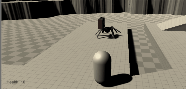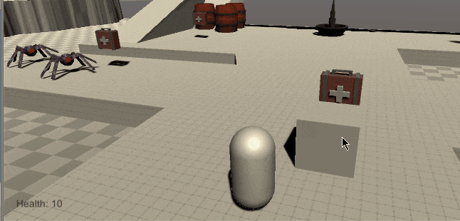 then i created a health pack and put a trigger detection on it to increase the players health and get rid of the health pack on contact. tehn i set up a game over scene to play when the player has died.